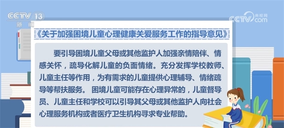 央視網(wǎng)消息:近日,民政部等五部門聯(lián)合印發(fā)《關(guān)于加強(qiáng)困境兒童心理健康關(guān)愛服務(wù)工作的指導(dǎo)意見》,通過加強(qiáng)心理健康教育、開展心理健康監(jiān)測等措施,全面提升困境兒童心理健康水平和身心健康素質(zhì)。