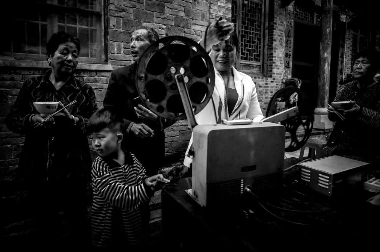 1983年,鄉(xiāng)里成立了電影放映隊,曹毅成了隊長,還參加了電影培訓班,扎扎實實地學了放映技術(shù)、電工等好多課程,成了專業(yè)的放映員。那時片源少,一張片子各個鄉(xiāng)排期輪流放映,讓曹毅最開心的事,就是坐上幾個小時的公交車去縣里拿膠片。有時揣著膠片回來的路上就忍不住想樂,哪回放新電影都像打仗一樣,人山人海,得防著別碰壞了放映機,還得留心會有哪個村連夜來搶放映機?!翱傆幸蝗f人,銀幕前后都是人,背面都有人看。在稻田里面把那稻子割完了以后,電影就在稻場里面放,不然地方不夠大?!笨諝庵酗h著稻谷的香味,不少人會盤腿坐在地上,扎扎實實看完一部電影。
