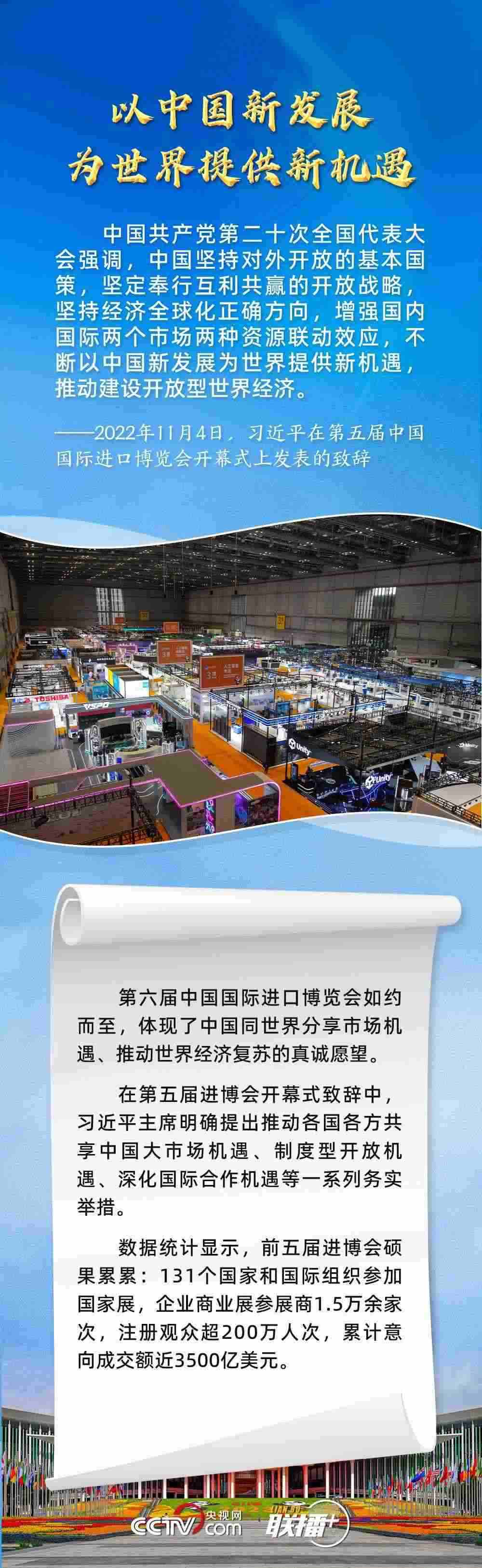 “中國擴大高水平開放的決心不會變,同世界分享發(fā)展機遇的決心不會變,推動經濟全球化朝著更加開放、包容、普惠、平衡、共贏方向發(fā)展的決心不會變?!蔽迥陙?,習近平主席在進博會上宣布一系列重大開放舉措,充分彰顯了中國致力于促進世界經濟包容性增長,建設開放型世界經濟的信心與決心。