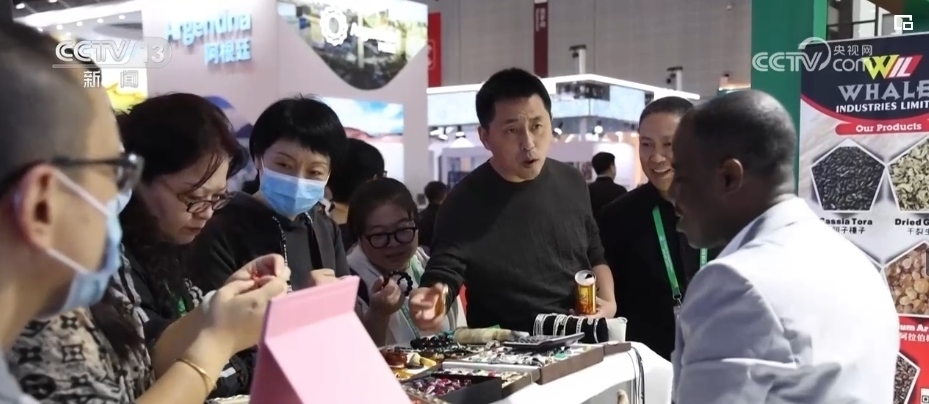 不僅是“回頭客”收獲滿滿,“頭回客”烏干達商人蒂莫西表示感到十分驚喜。他是第一次來參展,只拿到了3層貨架的展位。但是,來自烏干達的牛角梳等牛角手工藝品,吸引了不少訪客駐足詢問。