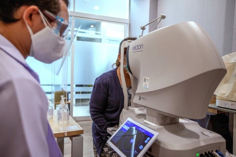 △2022年2月14日,在泰國曼谷詩里拉吉醫(yī)院,一名醫(yī)生操作5G自動驗(yàn)光儀為患者檢查。2021年12月,5G智慧醫(yī)院項(xiàng)目在詩里拉吉醫(yī)院啟動。