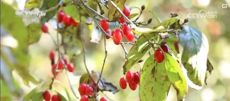 河南西峽:果實(shí)綴枝頭 22萬畝山茱萸迎采收