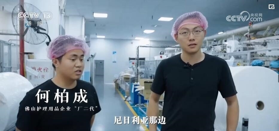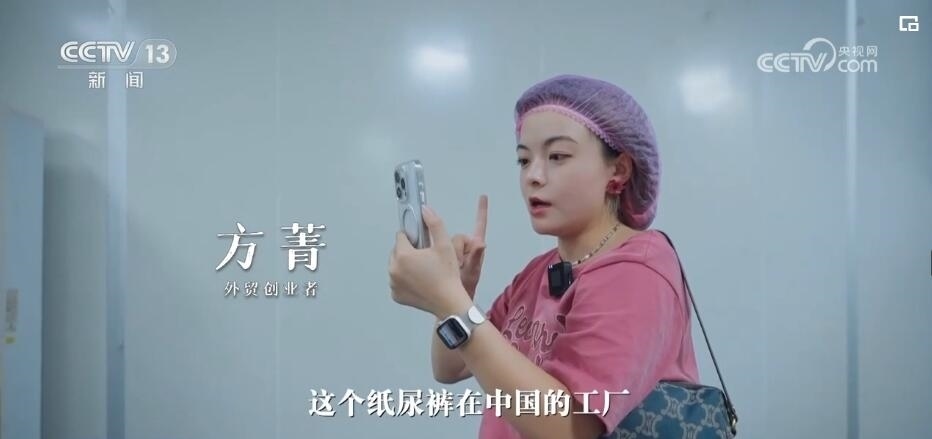 記者:現在方方(方菁)在給她的非洲客戶打視頻電話,來給她更直觀地看,這個紙尿褲在中國的工廠是怎么生產出來的。