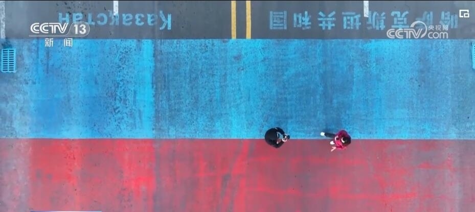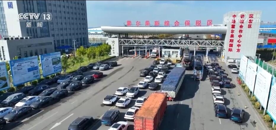 總臺(tái)記者 崔寧:看我的腳下,這邊是中國的土地,這邊是哈薩克斯坦的土地。人們?cè)谶@里可以一腳踏兩國,自由地往來出入,不僅可以旅游購物、貿(mào)易洽談,還能享受免稅政策。