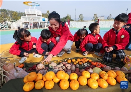 浙江省湖州市長(zhǎng)興縣李家巷鎮(zhèn)中心幼兒園開展“冬日校園 樂享豐收”校園豐收節(jié)主題活動(dòng)。孩子們?cè)诶蠋煹膸ьI(lǐng)下參觀豐收節(jié)農(nóng)作物展、手工藝品展,還參加挑擔(dān)子、運(yùn)蘿卜、接力送玉米等趣味運(yùn)動(dòng),學(xué)習(xí)知識(shí)、鍛煉身體,感受豐收帶來的喜悅。