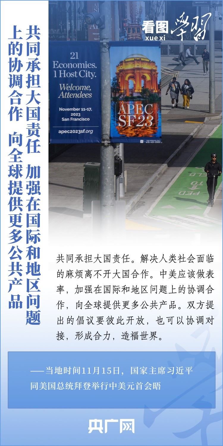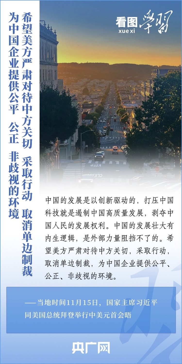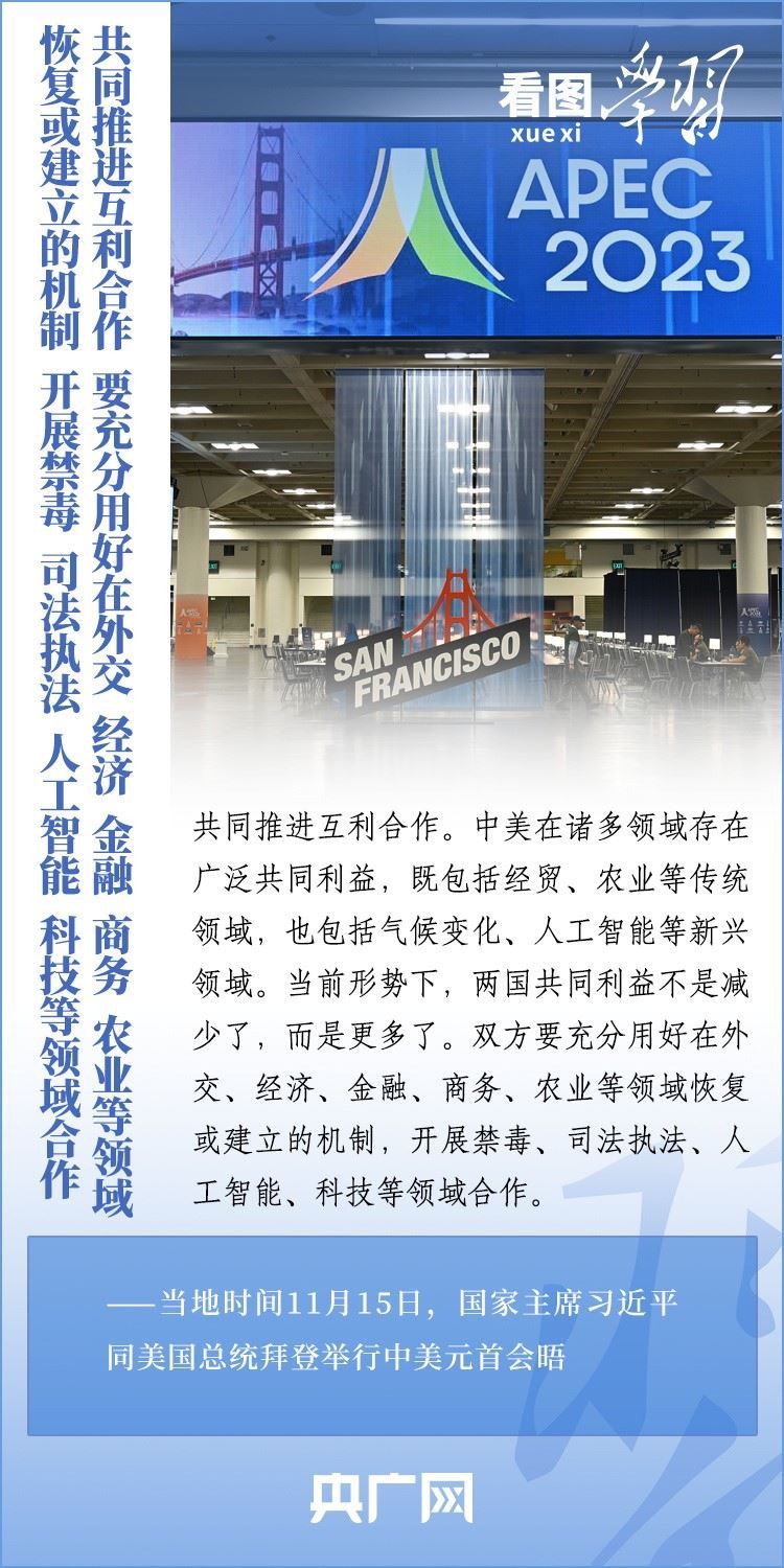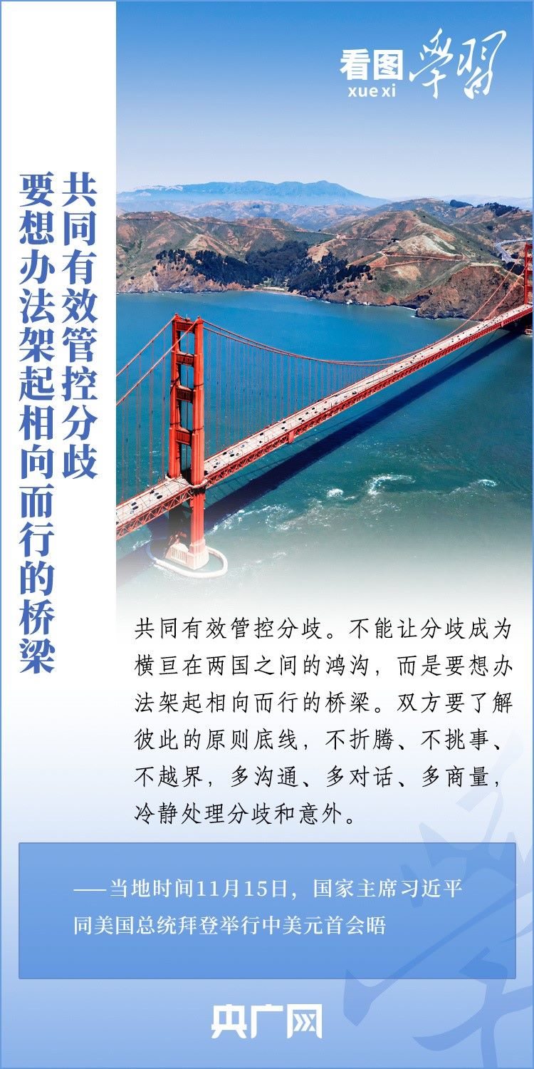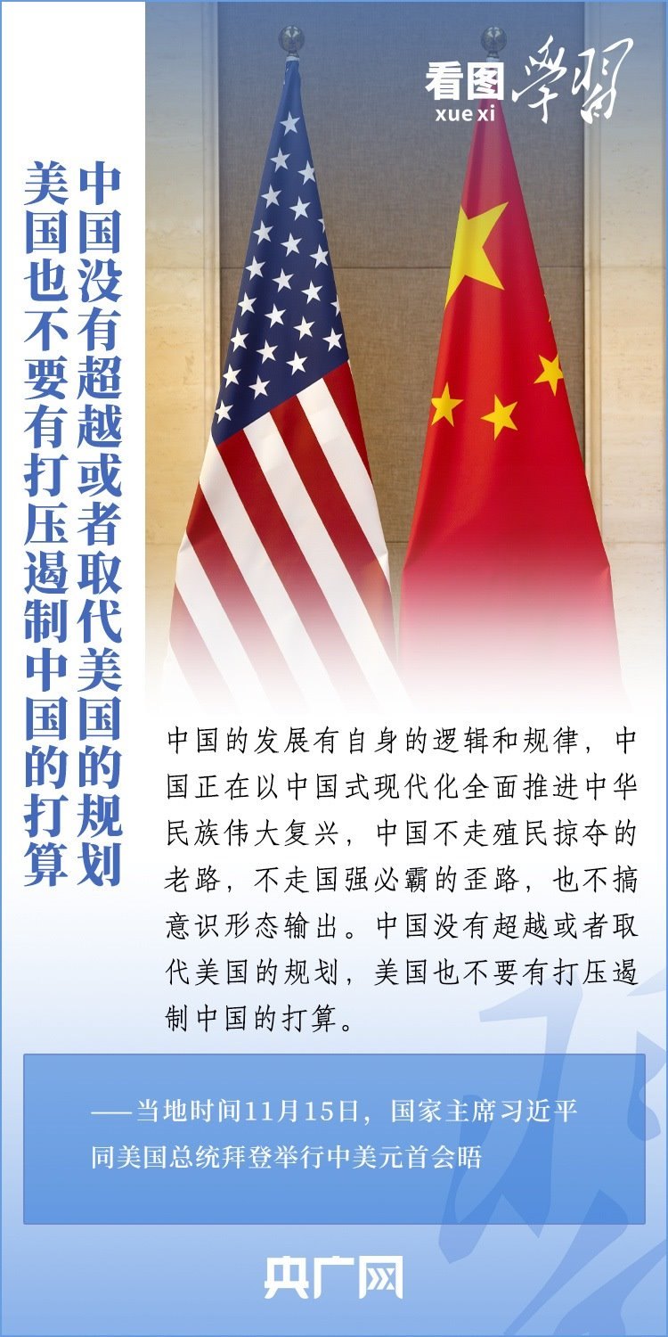 當(dāng)?shù)貢r間11月15日,國家主席習(xí)近平在美國舊金山斐洛里莊園同美國總統(tǒng)拜登舉行中美元首會晤。兩國元首就事關(guān)中美關(guān)系的戰(zhàn)略性、全局性、方向性問題以及事關(guān)世界和平和發(fā)展的重大問題坦誠深入地交換了意見。習(xí)近平主席指出,大國競爭解決不了中美兩國和世界面臨的問題。這個地球容得下中美兩國。中美各自的成功是彼此的機(jī)遇。一起來學(xué)習(xí)!