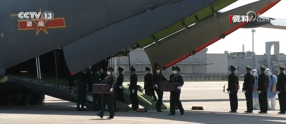 隨后,中方禮兵護(hù)送棺槨走上中國(guó)空軍運(yùn)-20運(yùn)輸機(jī)。北京時(shí)間11月23日上午,運(yùn)-20運(yùn)輸機(jī)從仁川國(guó)際機(jī)場(chǎng)起飛。