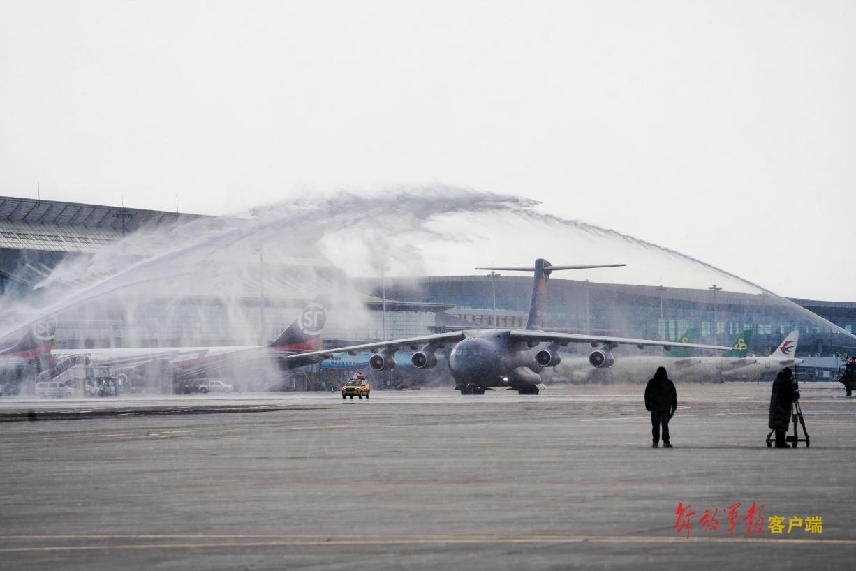 運-20專機(jī)通過“水門”。中國軍網(wǎng)記者劉丹 攝