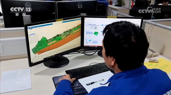 精益求精是確保產(chǎn)品質(zhì)量的生命線,科技創(chuàng)新則是推動產(chǎn)業(yè)進(jìn)步的動力源。2016年,江南造船成立了江南研究院,利用數(shù)字技術(shù)來提高設(shè)計和生產(chǎn)中的效率。比如這套VR系統(tǒng)就可以模擬船艙內(nèi)的真實情況,讓設(shè)計師、建造團(tuán)隊和船東公司可以據(jù)此共同討論設(shè)計是否合理,這極大地降低了成本、提高了效率。