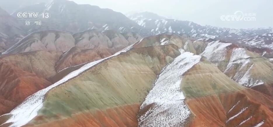 近日,一場(chǎng)大雪讓昌吉百里丹霞風(fēng)景道如同童話世界一般。沿著S101省道一路向西,從高處俯瞰丹霞,高山南北坡呈現(xiàn)截然不同的風(fēng)光。雪落北坡把層巒疊嶂的山脈裝扮得如水墨丹青,而南坡陽(yáng)光普照,五彩丹霞盡顯婀娜多姿。