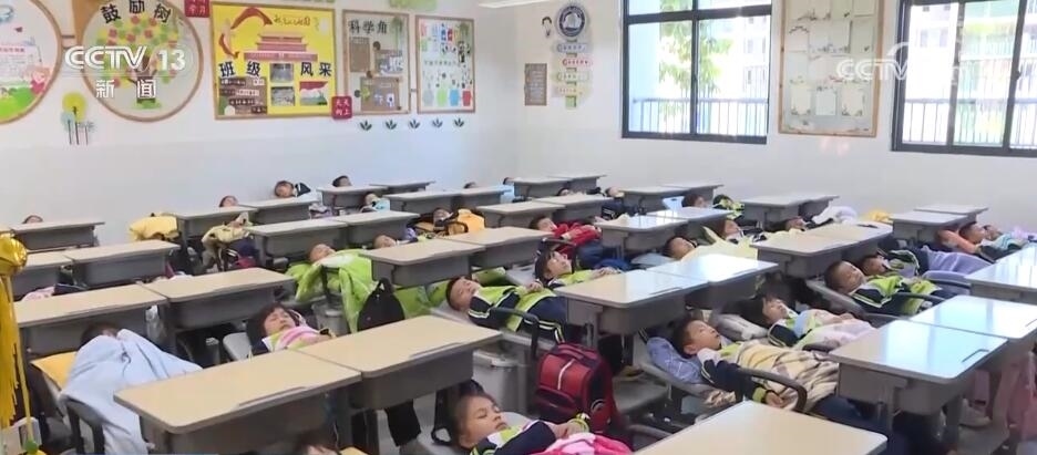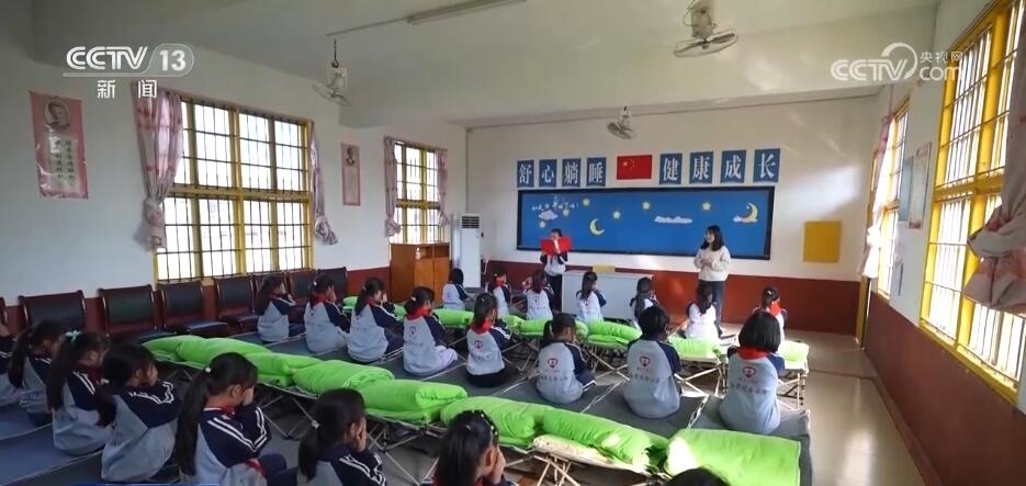 一些鄉(xiāng)村學(xué)校也結(jié)合實際情況,努力打造午休條件。在湖南株洲這所小學(xué),每個學(xué)生都擁有一張可以躺著午休的折疊小床,每天中午能保證至少40分鐘的躺睡時間。