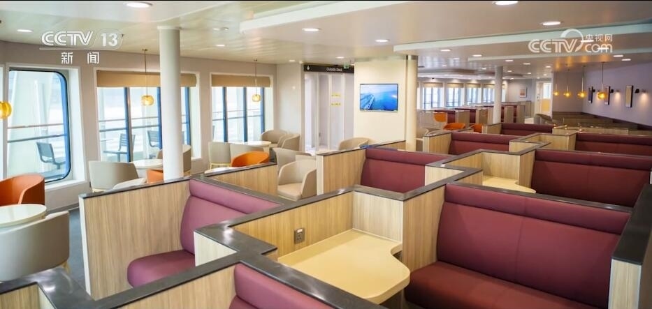 不僅操作靈巧、動(dòng)力強(qiáng)勁,船上還為旅客提供了游戲區(qū)、兒童區(qū)、餐飲區(qū)等超過1萬平方米的公共活動(dòng)區(qū)域。通過建立完整的產(chǎn)業(yè)鏈,內(nèi)裝方面已實(shí)現(xiàn)了從設(shè)計(jì)、制造、安裝全過程100%國產(chǎn)化。
