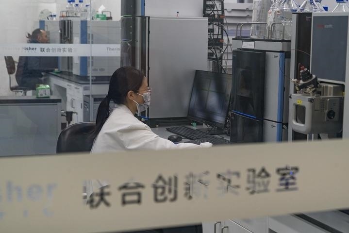 在成都天府國(guó)際生物城一處實(shí)驗(yàn)室,研究人員在工作(2023年4月25日攝)。新華社記者 唐文豪 攝