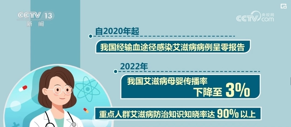自2020年起,我國經(jīng)輸血途徑感染艾滋病病例呈零報(bào)告。2022年,我國艾滋病母嬰傳播率下降至3%,重點(diǎn)人群艾滋病防治知識知曉率達(dá)90%以上。