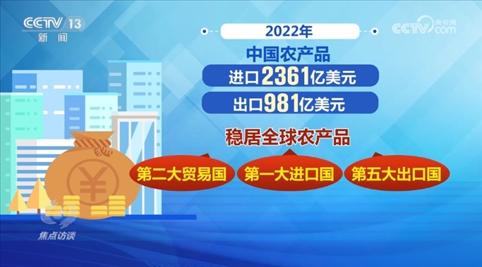 數(shù)據(jù)顯示,2001年至2022年,中國農(nóng)產(chǎn)品貿(mào)易額年均增長12.6%,農(nóng)產(chǎn)品出口額年均增長9.1%,進口額年均增長15.4%。2022年,中國農(nóng)產(chǎn)品進口2361億美元,出口981億美元,穩(wěn)居全球農(nóng)產(chǎn)品第二大貿(mào)易國、第一大進口國、第五大出口國。糧食安全的穩(wěn)定性,離不開農(nóng)業(yè)供應(yīng)鏈的安全可控。