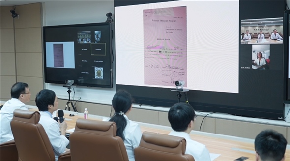 今年3月,吳德熙(左二)和同事與多米尼克開展遠(yuǎn)程會診