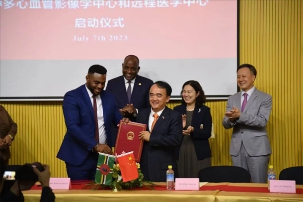 吳德熙半年可見的朋友圈里,唯一一條動態(tài)發(fā)自多米尼克。那是2023年7月7日,中國-多米尼克心血管影像學(xué)中心和遠(yuǎn)程醫(yī)學(xué)中心成立的日子。為了這個了不起的時刻,時隔大半年,他再次跨過半個地球,登上這座小島。