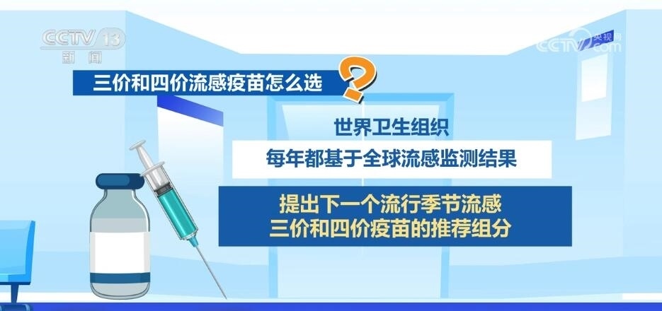 三價(jià)和四價(jià)流感疫苗怎么選?世界衛(wèi)生組織每年都基于全球流感監(jiān)測(cè)結(jié)果提出下一個(gè)流行季節(jié)流感三價(jià)和四價(jià)疫苗的推薦組分,三價(jià)和四價(jià)流感疫苗都可有效起到預(yù)防效果,公眾可自愿接種任一種流感疫苗。