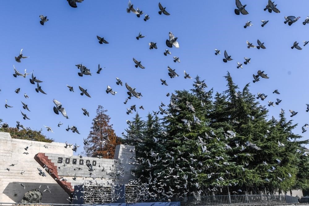 2022年12月13日,南京大屠殺死難者國家公祭儀式現(xiàn)場放飛和平鴿。 新華社記者李博 攝
