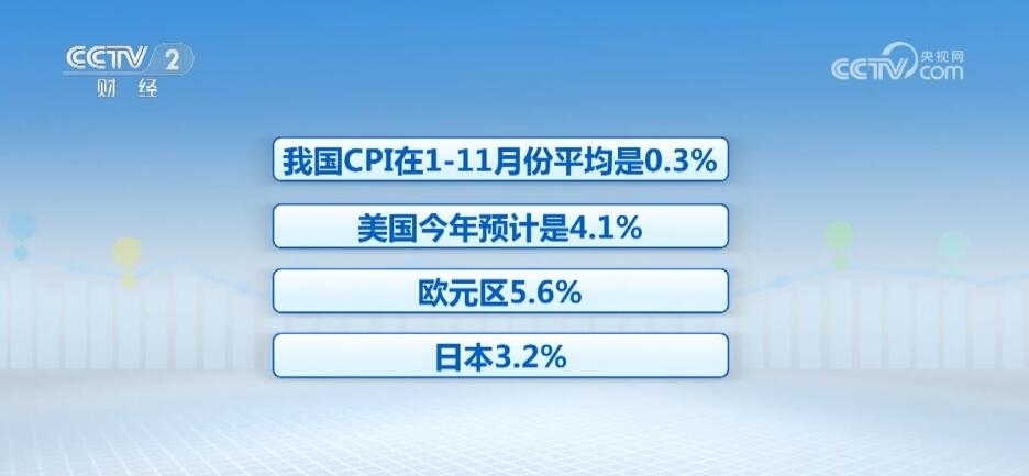 寧吉喆表示,消費物價上漲率,也就是通脹率,我國CPI在1—11月份平均是0.3%,美國今年預計是4.1%,歐元區(qū)5.6%,日本3.2%。