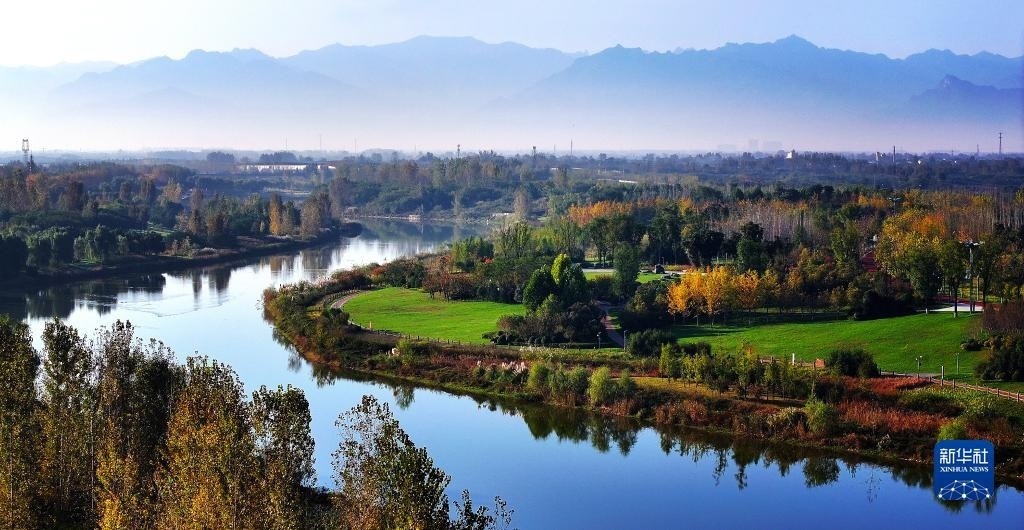 這是陜西西咸新區(qū)灃河兩岸景色(2023年10月15日攝,無人機(jī)照片)。近年來,陜西西咸新區(qū)實(shí)施灃河綜合治理工程,治污、凈水、增綠等多措并舉,利用河流自然形態(tài)打造生態(tài)節(jié)點(diǎn),形成了“洪暢、堤固、水清、岸綠、景美、管理長效”的河湖景象。新華社記者 劉瀟 攝