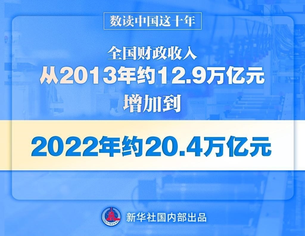 黨的十八大以來,財(cái)政收入保持較快增長,全國財(cái)政收入從2013年的約12.9萬億元增加到2022年的約20.4萬億元。