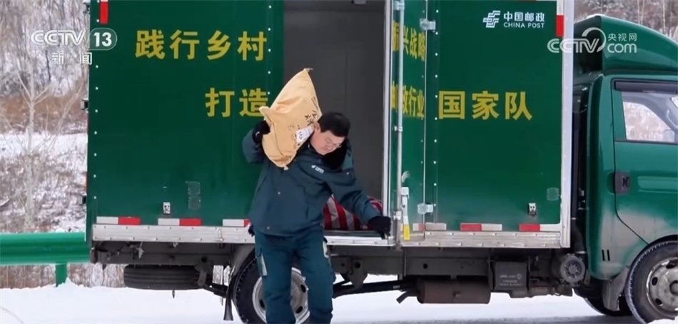 吉林省臨江市葦沙河鎮(zhèn)四道河子村村民 馬先紅:這兩天大雪,大伙兒都以為不能來(lái)了,這(快遞包裹)送得特別到位,送到家門(mén)口。