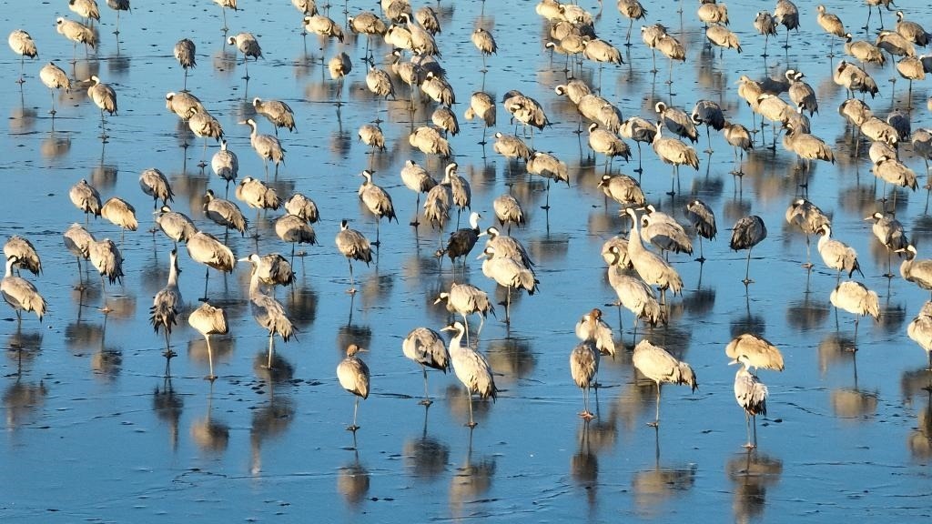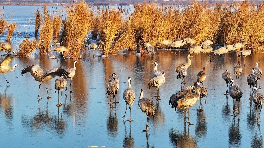“12月初開始,鶴群陸續(xù)飛臨衡水湖。目前正處于候鳥越冬期,已有60余種、5萬余只候鳥飛到衡水湖越冬。”衡水湖國家級自然保護區(qū)資源保護局濕地生態(tài)監(jiān)測科科長張余廣說。