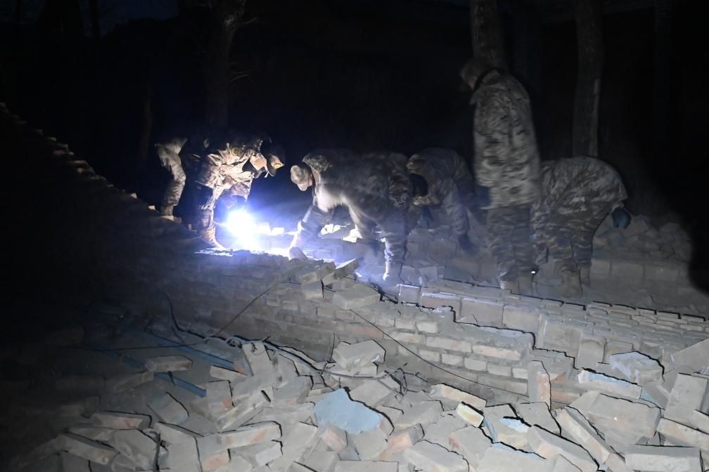 救援人員在清理倒塌的院墻(12月19日攝)。新華社記者 范培珅 攝
