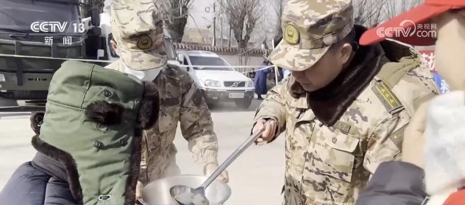 央視網(wǎng)消息:今天(12月22日)是冬至,正在執(zhí)行抗震救災任務的部隊官兵特意準備了熱氣騰騰的餃子和豐盛的食物,為群眾送去溫暖和祝福。