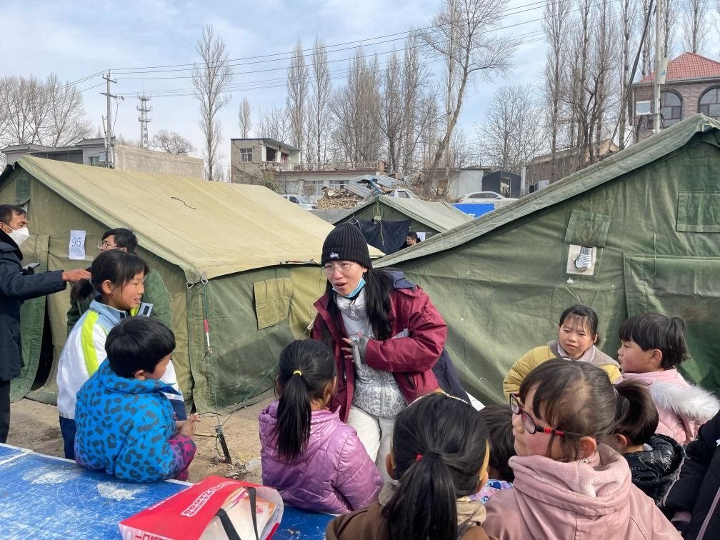 21日上午,馮小霞和24名同伴就從與積石山縣毗鄰的廣河縣抵達(dá)災(zāi)區(qū),開展志愿服務(wù)。地震發(fā)生后,和馮小霞類似,來自多地的志愿者化身“帳篷城”里的“孩子王”,為大家開設(shè)了繪畫、文化課程輔導(dǎo)、防災(zāi)救災(zāi)知識(shí)等內(nèi)容的志愿服務(wù)。