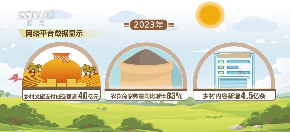 相關網絡平臺數(shù)據(jù)顯示,2023年,鄉(xiāng)村文旅支付成交額超40億元,農貨商家數(shù)量同比增長83%,鄉(xiāng)村內容新增4.5億條。數(shù)字技術和平臺在鄉(xiāng)村電商、鄉(xiāng)村文旅、鄉(xiāng)村人才等方面發(fā)揮了重要作用。