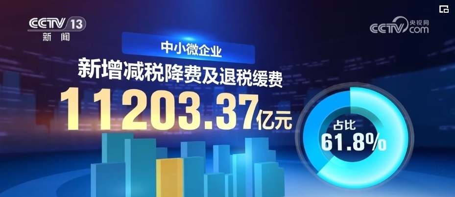 分企業(yè)規(guī)模看,中小微企業(yè)受益最明顯,新增減稅降費(fèi)及退稅緩費(fèi)11203.37億元,占比61.8%。
