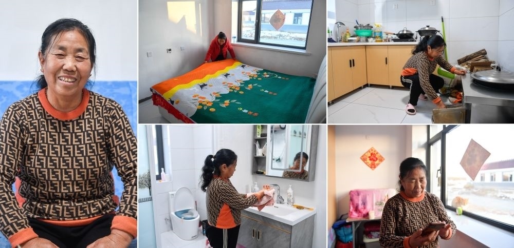 吉林省舒蘭市開原鎮(zhèn)新開村村民徐中仁在新房子中的生活場景(12月7日攝,拼版照片)。徐中仁說,“土炕”變“大床”,WIFI、自來水、室內(nèi)馬桶一應(yīng)俱全,新房子讓她體驗上了“城里的生活”。新華社記者 許暢 攝