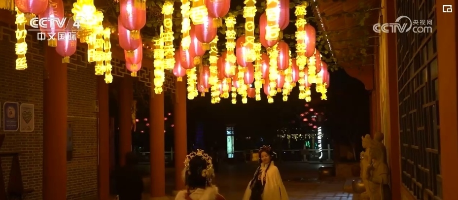張燈結(jié)彩迎接新年。在內(nèi)蒙古呼和浩特,各式花燈點(diǎn)亮節(jié)日夜晚,一些街道和廣場上多樣燈組,將城市裝扮得絢麗多彩。在河南漯河河上街古鎮(zhèn),形式多樣的羊皮燈籠、荷花燈、詩詞燈烘托出濃濃的新年氛圍。在安徽黃山巖寺老街,大紅燈籠與粉墻黛瓦交相輝映,傳統(tǒng)的舞龍表演穿梭其中,祈愿美好新年。