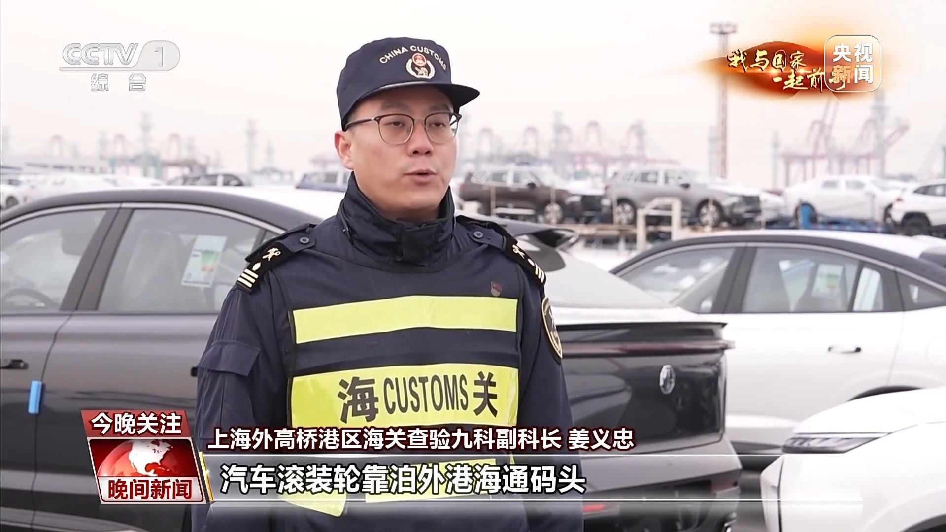 上海外高橋港區(qū)海關(guān)查驗(yàn)九科副科長(zhǎng) 姜義忠:2023年平均每天都有2—3艘汽車(chē)滾裝輪靠泊外港海通碼頭。汽車(chē)出口可以實(shí)現(xiàn)“即報(bào)即放”“即查即放”,確保汽車(chē)出口“零延時(shí)”。