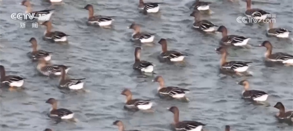 在漯河市舞陽縣侯集鄉(xiāng),上千只豆雁在河面上追逐嬉戲,密密麻麻,或覓食,或起舞,給冬日里的沙澧河兩岸增添了生機。