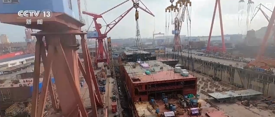 船塢是船廠建造船舶的工作平臺(tái)和關(guān)鍵場(chǎng)地。在碼頭我們看到,“極地”號(hào)出塢下水后,排在其后的4艘船緊接著要進(jìn)塢開始建造。