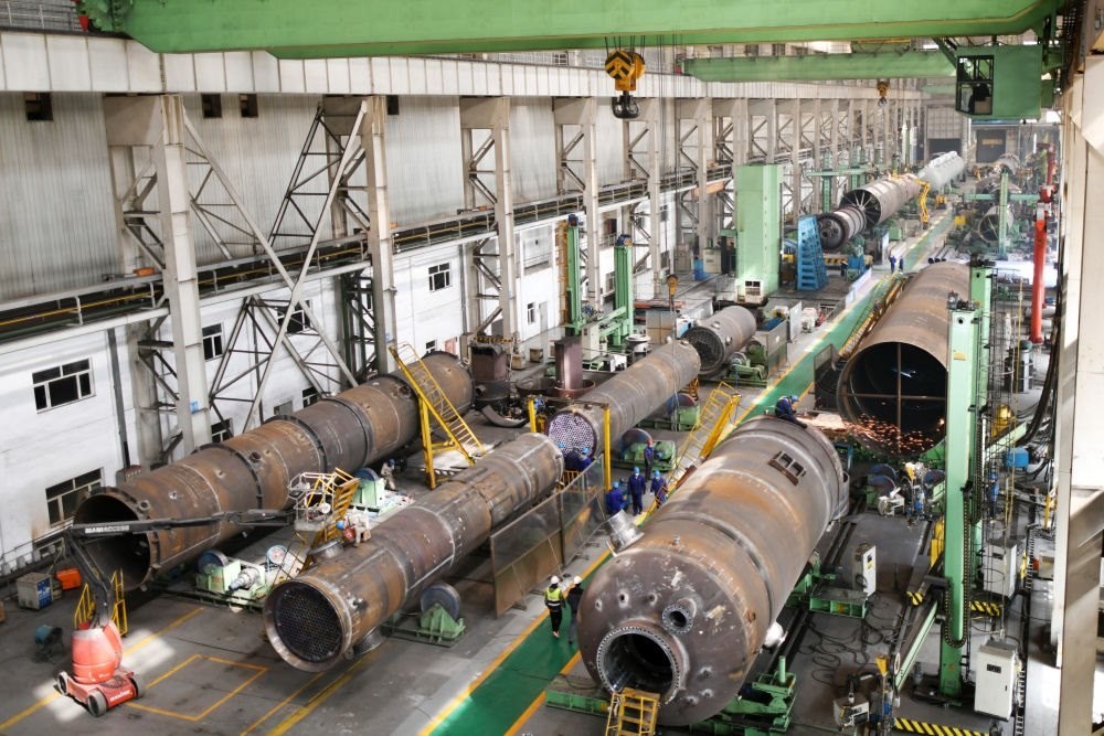 工人在哈電集團(tuán)哈爾濱鍋爐廠(chǎng)有限責(zé)任公司生產(chǎn)車(chē)間作業(yè)(2023年4月12日攝)。新華社記者 王建威 攝