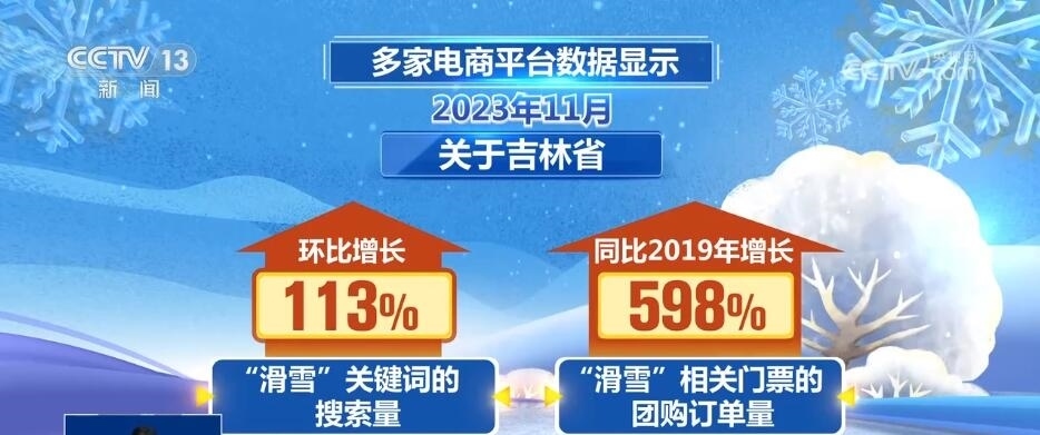 多家電商平臺數(shù)據(jù)顯示,2023年11月,關(guān)于吉林省“滑雪”關(guān)鍵詞的搜索量環(huán)比增長113%,“滑雪”相關(guān)門票的團購訂單量同比2019年增長了598%。