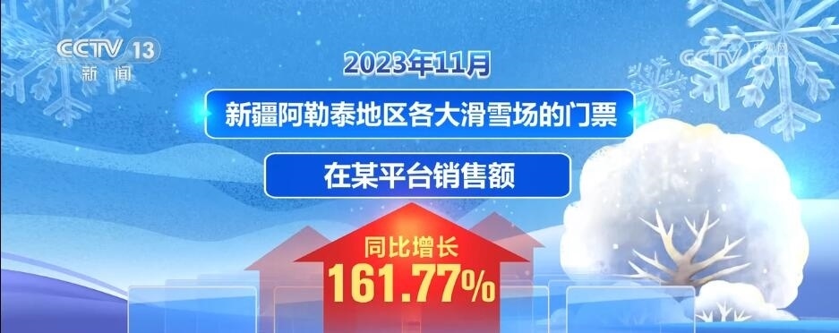 2023年11月,新疆阿勒泰地區(qū)各大滑雪場的門票在某平臺的銷售額同比增長了161.77%。