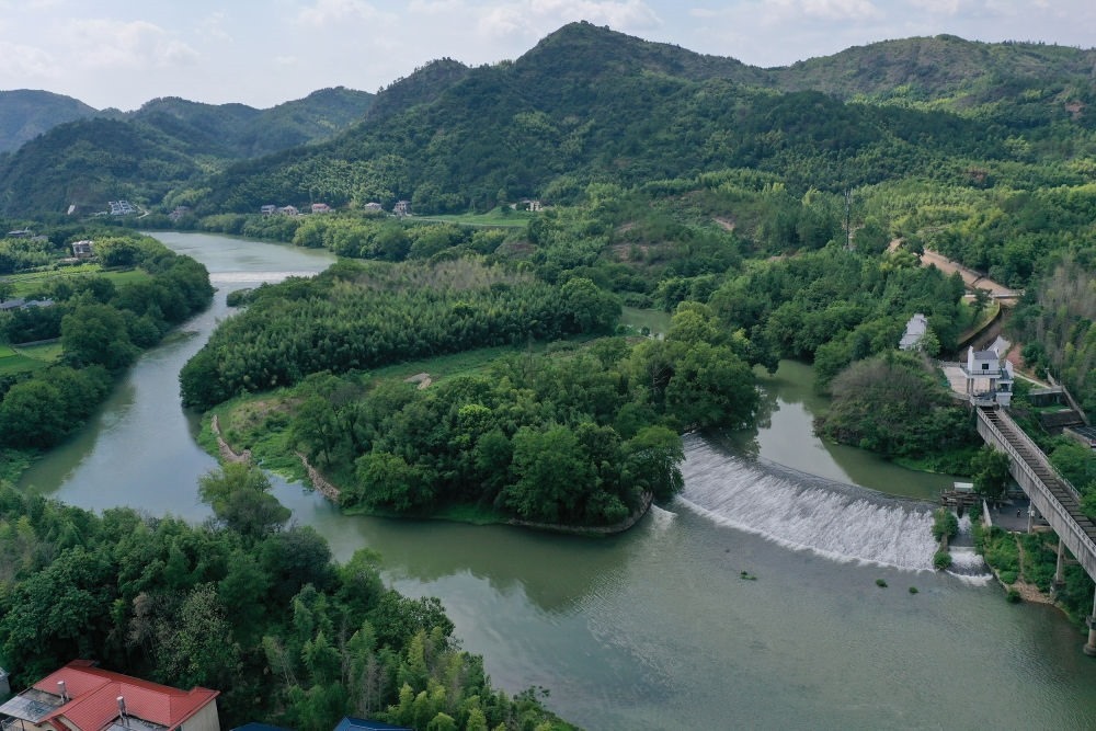 位于浙江省衢州市龍游縣的世界灌溉工程遺產(chǎn)姜席堰(2023年8月2日攝,無人機(jī)照片)。新華社記者 黃宗治 攝