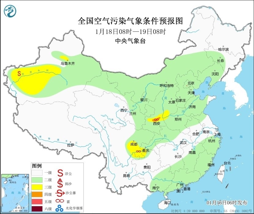 16日至18日,區(qū)域大氣擴(kuò)散條件一般,山西南部、陜西關(guān)中等地的部分地區(qū)有輕至中度霾。