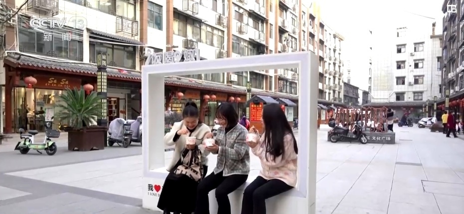 不僅如此,當(dāng)?shù)剡€對巷子的屋頂、外墻、地面等進(jìn)行升級改造。原來破舊的商業(yè)街改造后白墻黛瓦、古樸有致,并且融入了很多時尚的元素。用彩燈制成的當(dāng)?shù)鼐包c示意圖、主題雕塑、方言地標(biāo)休息區(qū)等受到年輕人的喜愛。環(huán)境好了,人氣也旺了,曾經(jīng)的“水巷子”徹底擺脫“水”的標(biāo)簽。