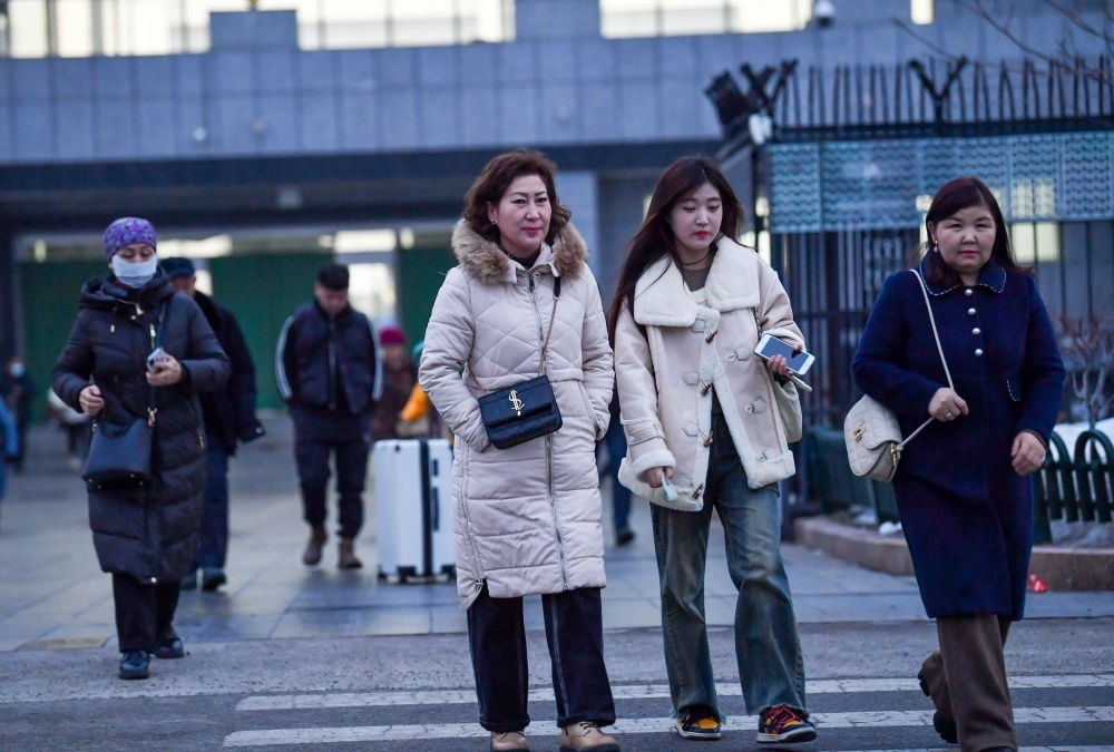 2024年1月15日,在新疆自貿(mào)試驗區(qū)霍爾果斯片區(qū)的中哈霍爾果斯國際邊境合作中心,商人通過快捷通道進(jìn)入園區(qū)。新華社記者 趙戈 攝