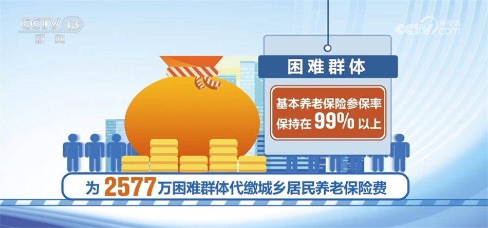同時,落實社保待遇按時足額發(fā)放,全年發(fā)放失業(yè)保險金等各類失業(yè)保險待遇976億元。為2577萬困難群體代繳城鄉(xiāng)居民養(yǎng)老保險費,困難群體基本養(yǎng)老保險參保率保持在99%以上。