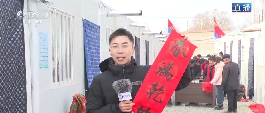 總臺記者 劉澤耕:這里是民和縣草灘村村委廣場安置點,隨著春節(jié)的腳步臨近,來自當(dāng)?shù)氐臅覅f(xié)會的會員正在寫春聯(lián)、寫福字,送給安置點的受災(zāi)群眾。搬進(jìn)安置點,群眾生活怎么樣?為了迎接春節(jié),大家都在做哪些準(zhǔn)備?