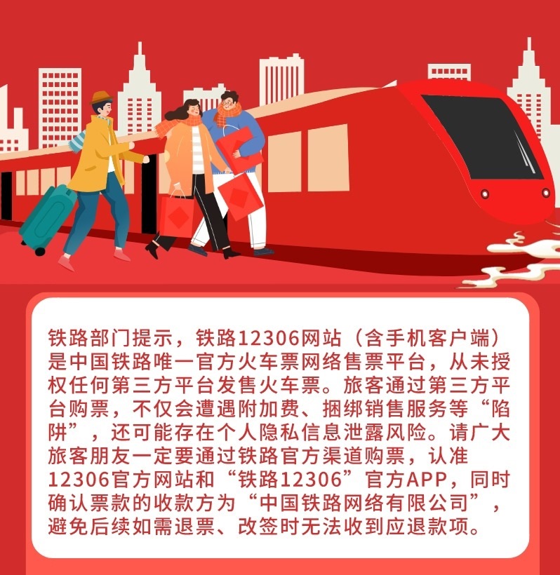 今年春運,鐵路部門升級了12306候補購票、購票信息預填、起售提醒訂閱、學生和務工人員專區(qū)預約購票等服務功能,優(yōu)化車票改簽規(guī)則,豐富12306信息通知服務內容,進一步改善旅客購票出行體驗。