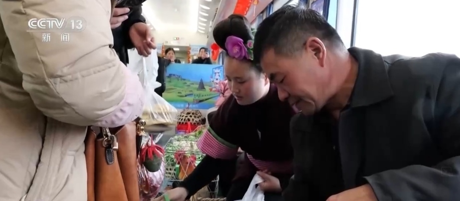 這趟“慢火車”,是鄉(xiāng)親們走親訪友的“幸??燔嚒?,更是把大山里的農(nóng)特產(chǎn)品送到山外售賣的“致富快車”。新春臨近,列車上的農(nóng)特產(chǎn)品車廂變得熱鬧起來,村民們將自家的年貨拿上車售賣,車廂里喜氣洋洋。
