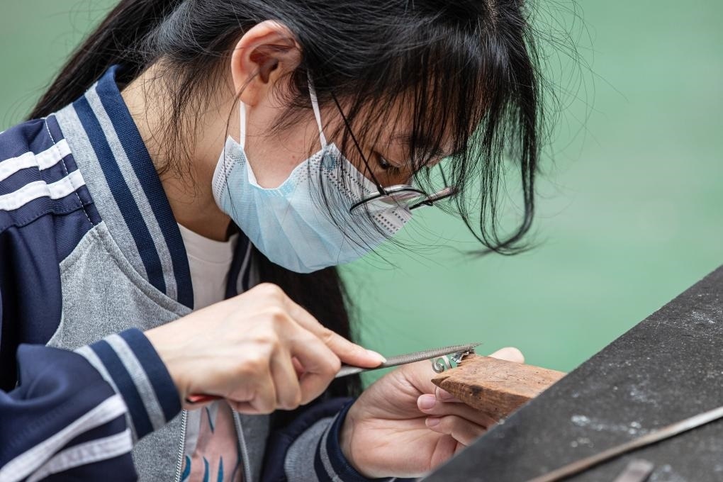 ?2023年11月29日,山東昌樂技師學(xué)院首飾設(shè)計(jì)與制作專業(yè)師生在練習(xí)專業(yè)技能。新華社記者張力元 攝